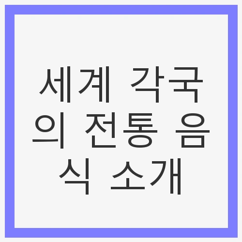 안녕하세요, 여러분! 오늘은 세계 각국의 전통 음식을 소개해드리려고 합니다. 음식은 단순한 생존을 넘어, 그 나라의 문화와 역사, 그리고 사람들의 삶을 엿볼 수 있는 중요한 요소입니다. 전통 음식은 각 지역의 특색을 담고 있으며, 그 맛은 물론, 그 뒤에 숨겨진 이야기까지 함께 전해줍니다. 이번 블로그 포스팅에서는 전 세계에서 사랑받고 있는 8가지 전통 음식을 다루며, 그들의 의미와 매력을 탐구해보겠습니다.